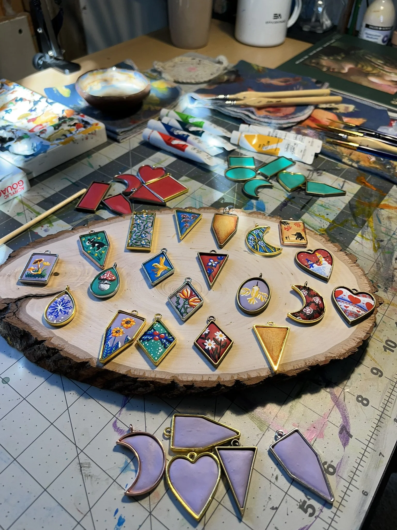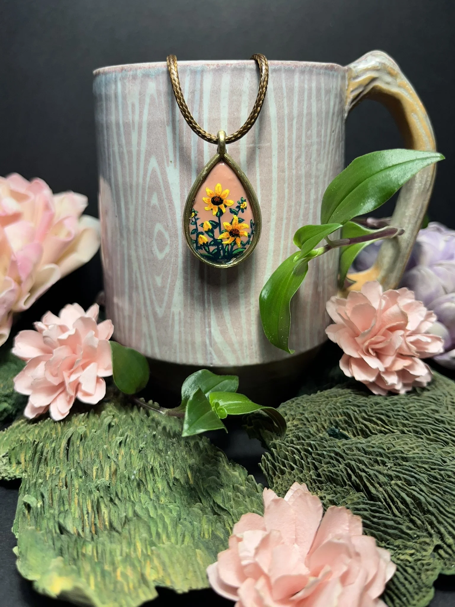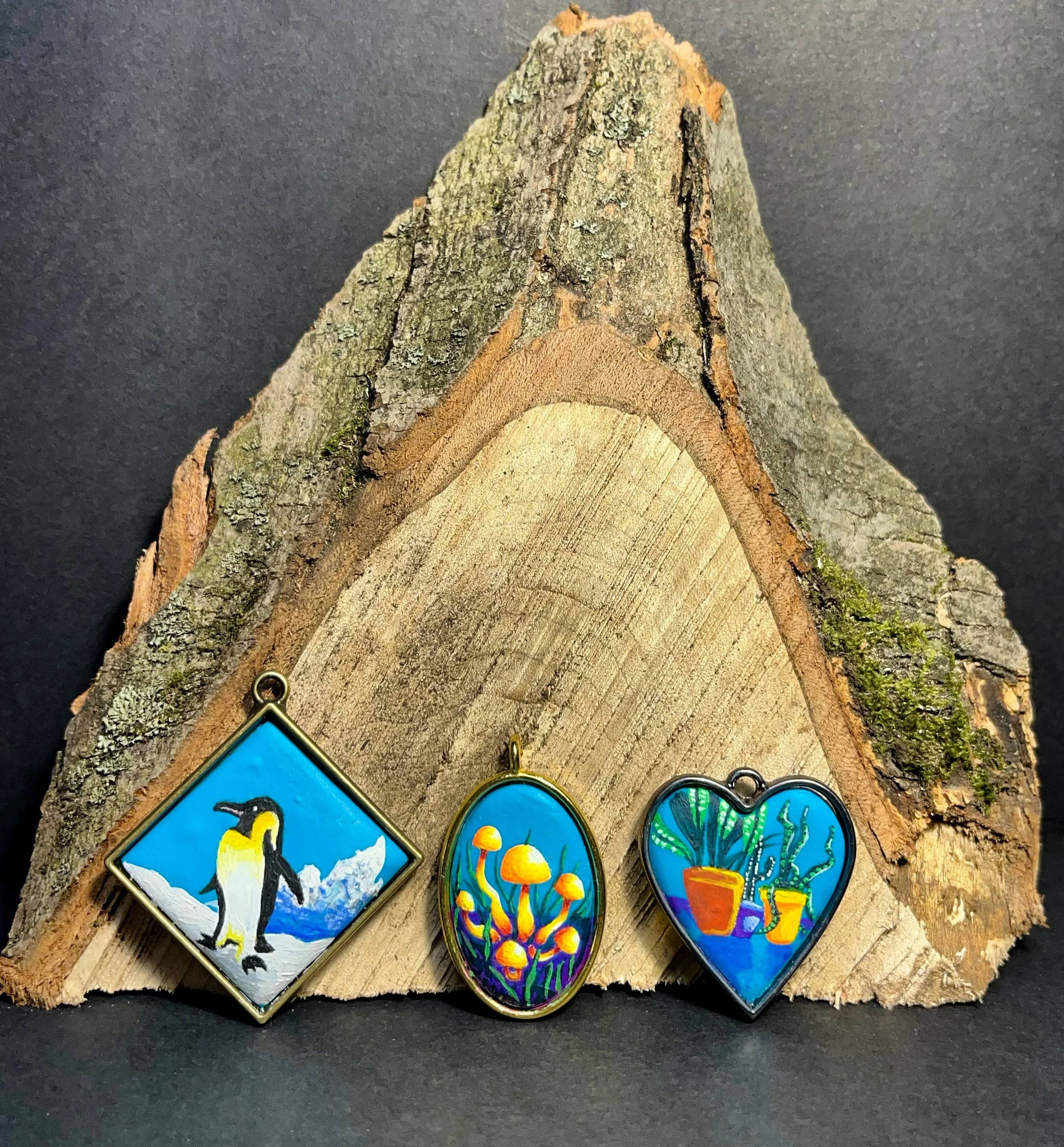 Step into the world of wearable art with my handcrafted jewelry. Each clay pendant is designed and painted by hand, blending intricate detail with natural inspiration. Find the perfect fusion of artistry and craftsmanship to complement your style.
